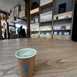 Got a hot matcha latte with oat milk and it came with a heart design! I like blue bottle. Nice aesthetic wooden interior and good lighting. Good for meetings and working. It's got WiFi, too!